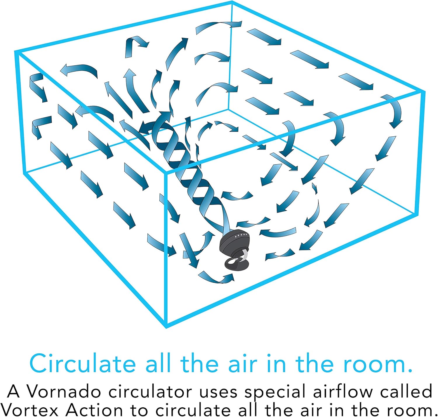 - POWERFUL VORTEX ACTION β Utilizes Vornado's signature Vortex air circulation to more effectively move air throughout the entire room. No matter where you are in the room, you can experience the power of a Vornado fan.