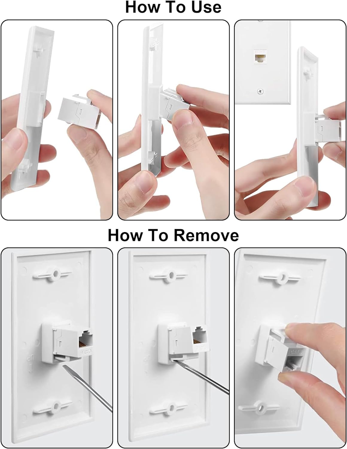 - COMPLETELY ASSEMBLED - The wall plate and keystones have been assembled completely. You can install it in the wall directly. No need to assemble the plate save your time and protect your fingers from getting hurt. The HDMI and Cat6 keystone ports are detachable, you can adjust and customize your HDMI and ethernet connections effortlessly.