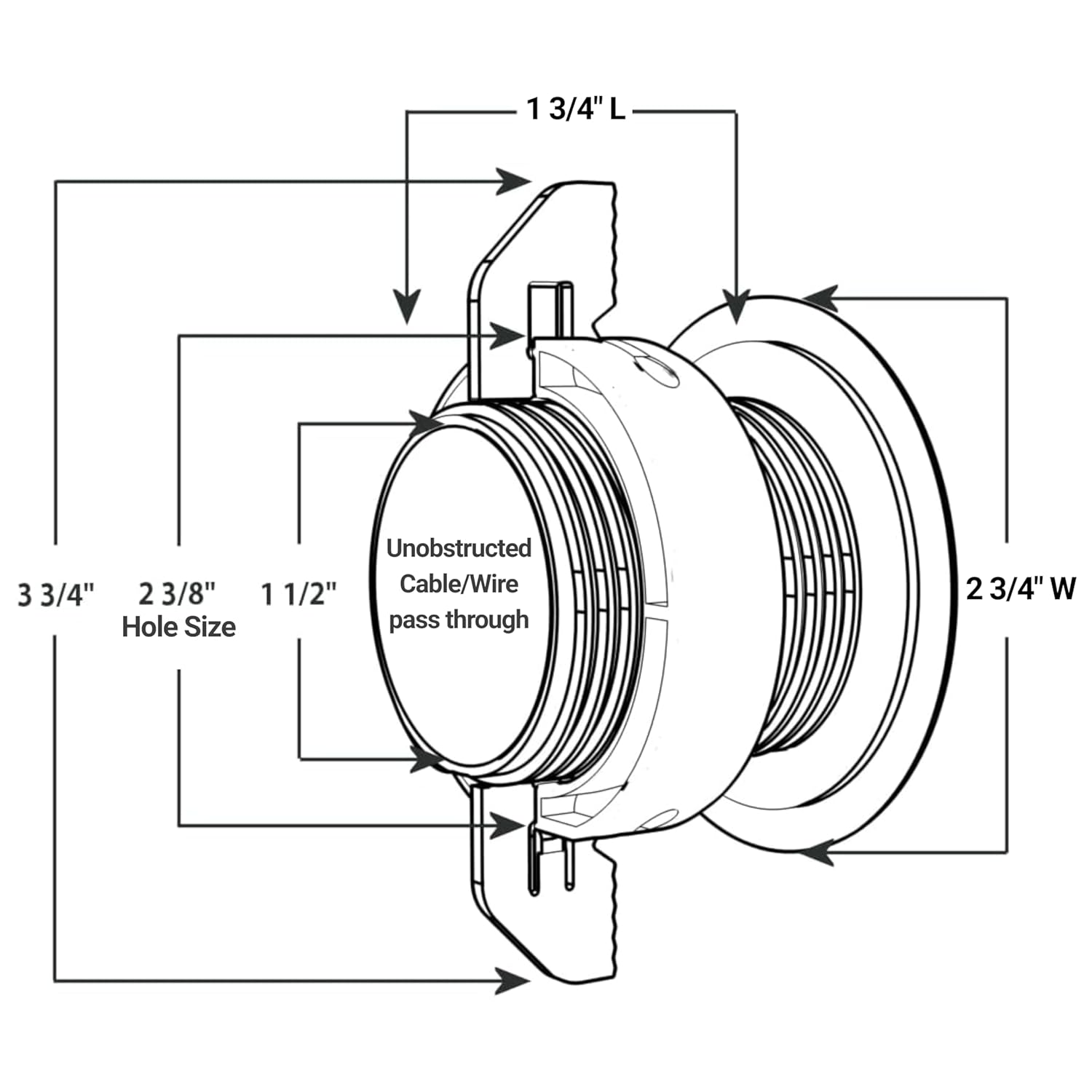 - Encases/protects the wires and cables for the full unobstructed product pass through of 1 1/2" diameter