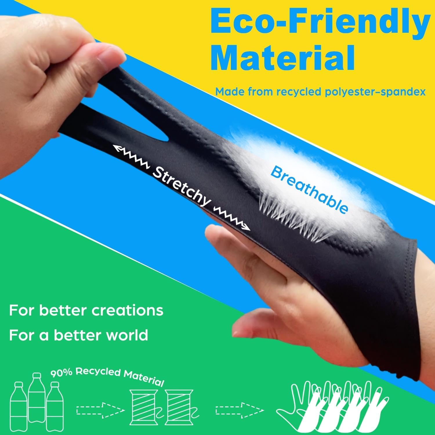 - This digital drawing glove is crafted from a 90% recycled polyester and spandex blend, offering comfort, stretch, and long-lasting durability.