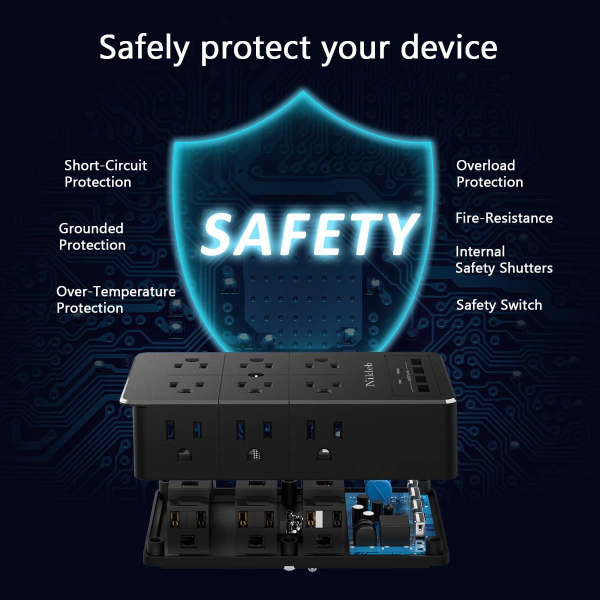 - Multiple outlet wall plug safety warranted: Fireproof material, surge protection 1080J plus grounded protection, overload protection, short-circuit protection, over current protection, over-voltage protection and overheating protection.