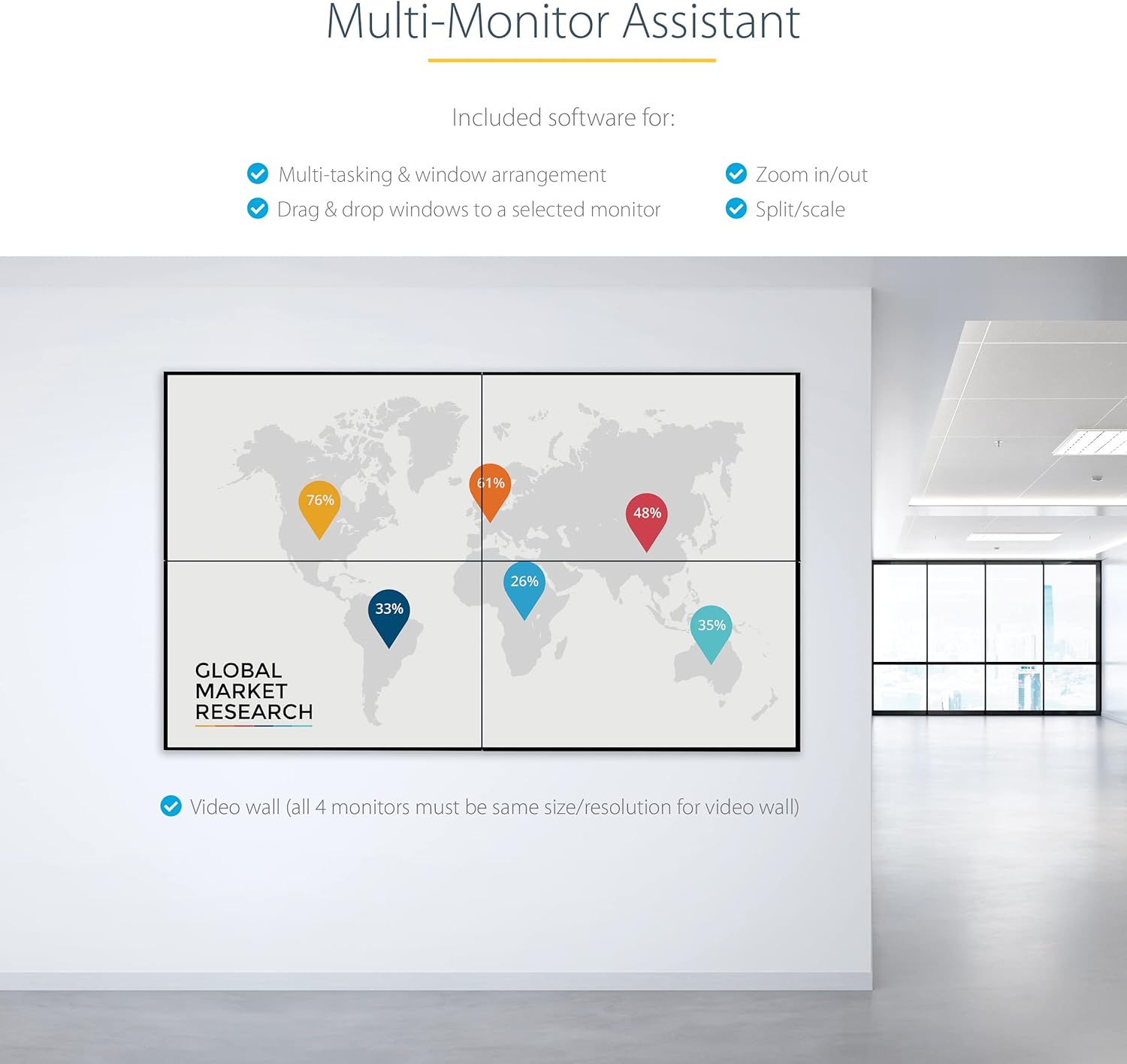 - MULTI-MONITOR ASSISTANT: Increase productivity w/ included software for multi-tasking and window arrangement; drag & drop windows to a selected monitor, zoom in/out, and split/scale