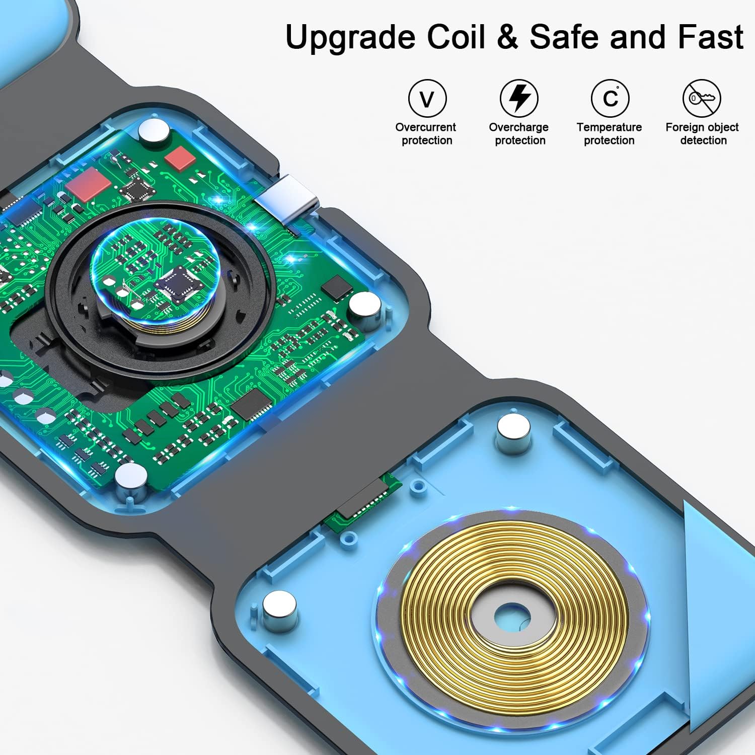 - Pay Attention to Family Health: Many other phone wireless charging station do not take anti-electromagnetic measures, and internal radiation will spread, causing harm to the human body. This folding charger uses a professional magnetic isolation sheet inside, no radiation leakage, the elderly and children can use it with no worry. This wireless charging station for apple products strive to protect the safety of you and your family.