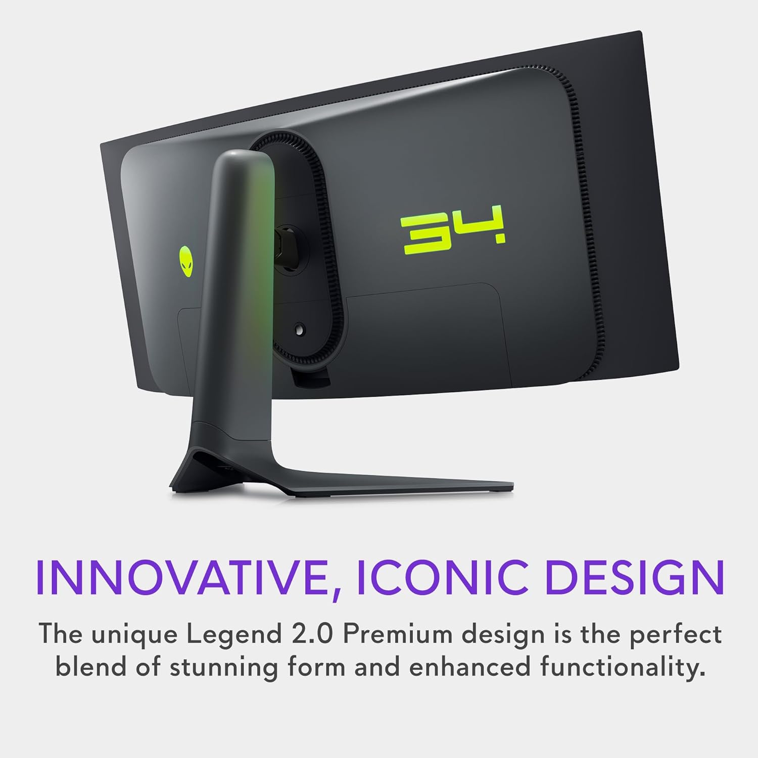 - IMPECCABLE DESIGN: The jaw-dropping new design features a sleek QD-OLED curved 1800R panel integrated into the iconic new Legend 2.0 ID, plus customizable RGB AlienFX lighting, 360° ventilation for better heat dissipation, improved cable management and a new centralized OSD 5-Axis joystick to make adjusting your settings easier. The height adjustable stand with height markers and the tilt, swivel, and slant capabilities allow for easy viewing adjustment.