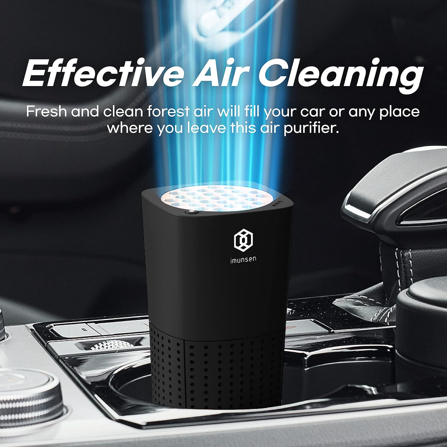 IMUNSEN M-003B True HEPA 13 Filter Air Purifier for Car, Desk, and Office with Carbon Deodorization Filter, 4-Stage Filtration, Smoke, Odors, Allergens, USB Port 5V, Made in Korea - Black
