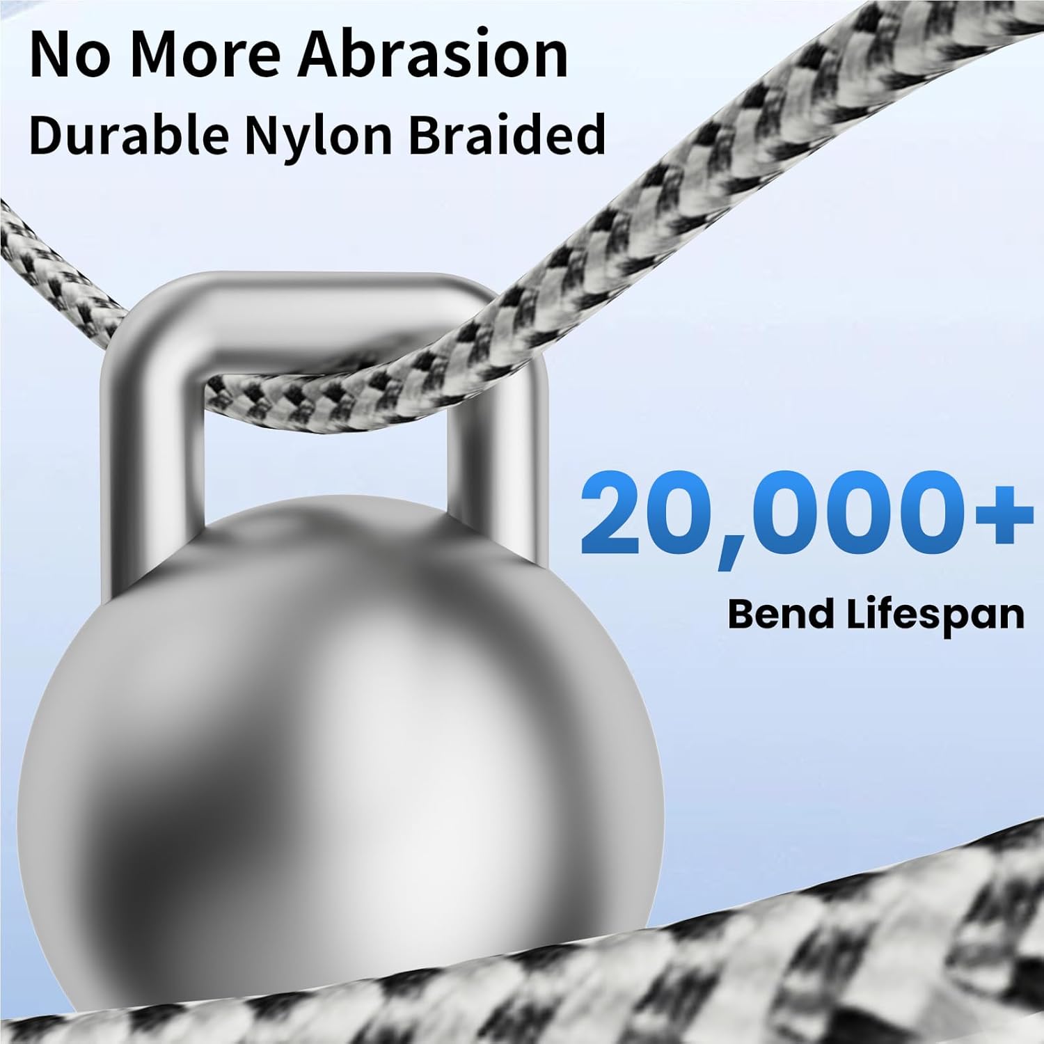 - 【HIGH QUALITY & DURABILITY】Multi phone charging cable designed and built with nylon braided materials, no tangle, which is made of high purity copper core and smart intelligent chip with overcharge protection, stable current protection. Each multiple charger cord cable has been tested with 20000+ times bend lifespan and strong bearing capacity. The high-quality aluminum housing makes the 3 in 1 usb cable more durable and resistant to heat and corrosion. Ensure a longer service life.