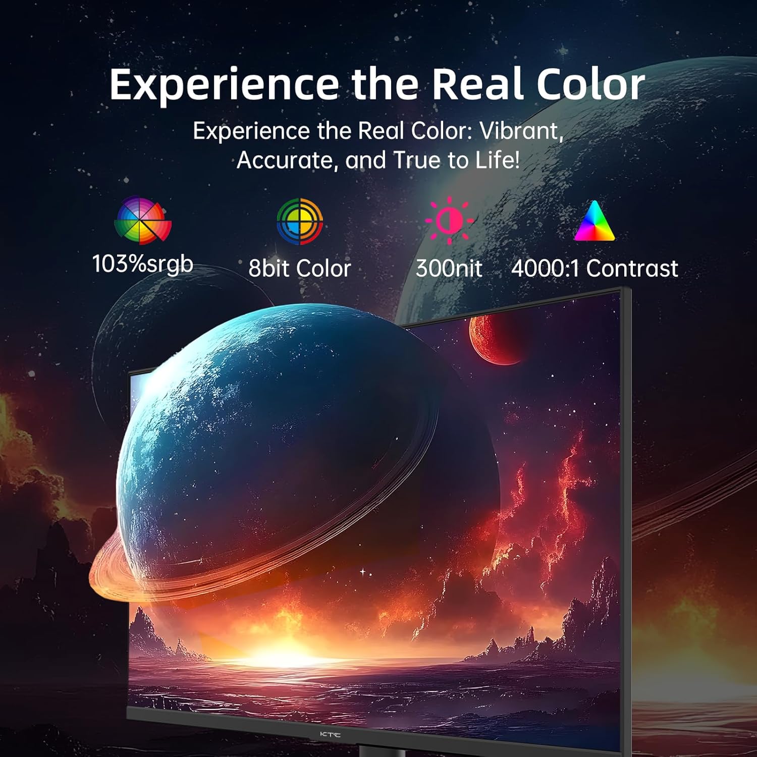KTC 24 inch Monitor - 1080P Monitor, 100Hz FreeSync Gaming Moniter with HDR10,VESA Mountable, Adjustable Tilt, ZeroFrame Design, HDMI,VGA,Earphone Ports, PC Monitors for Office