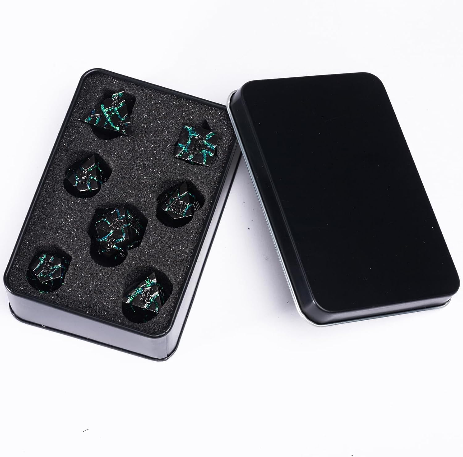 - Easy to Carry - the DND dice with box, metal box with foam, which is great to display and store your polyhedral dice, you can easy to carry the metal dice with you anywhere, and it is also a good choice for gift giving.