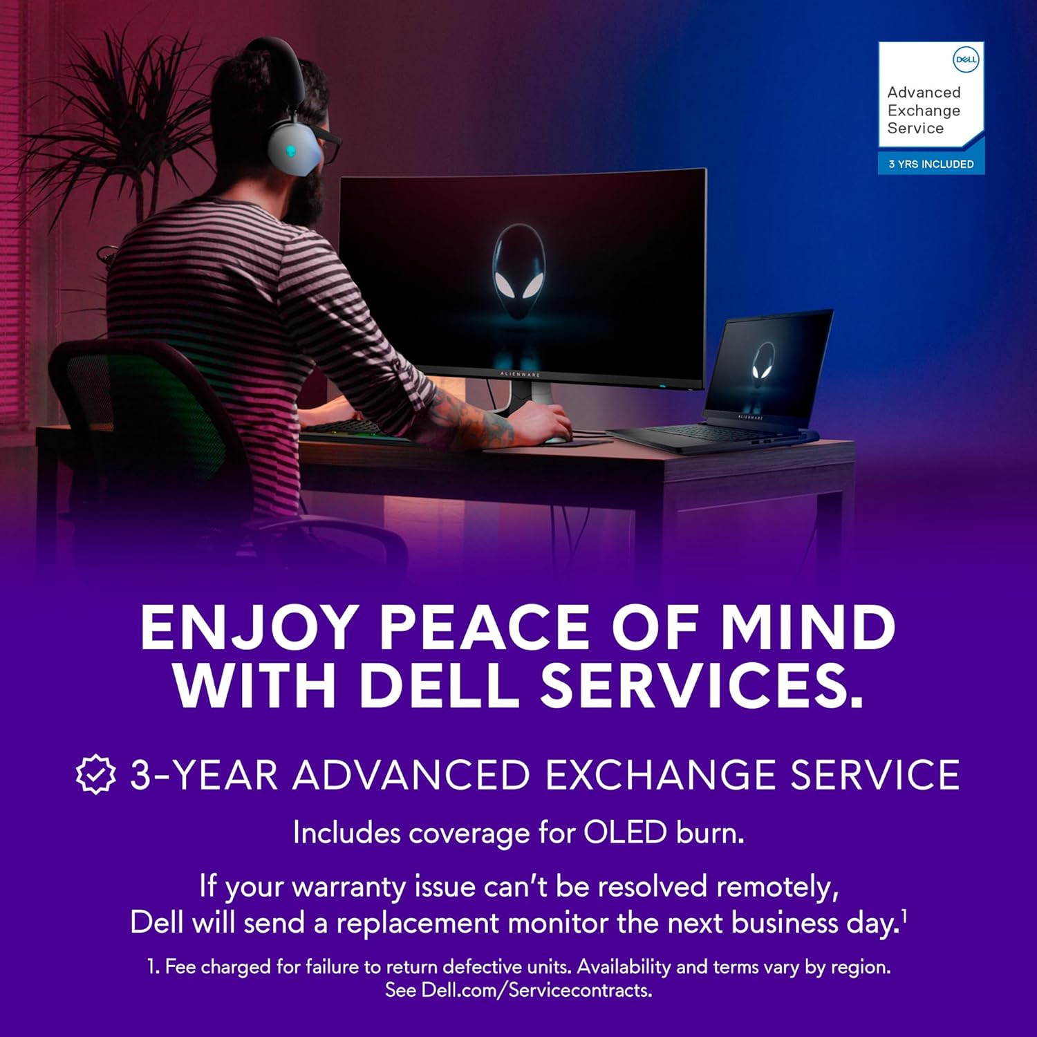 Alienware AW2725DF OLED Gaming Monitor - 26.7-inch Quantom-Dot WQHD (2560x1440) 360Hz 0.03Ms Display, AMD FreeSync Premium Pro, HDMI/DP/USB 3.2 Gen1, Height/Tilt/Swivel/Pivot Adjustability - Black