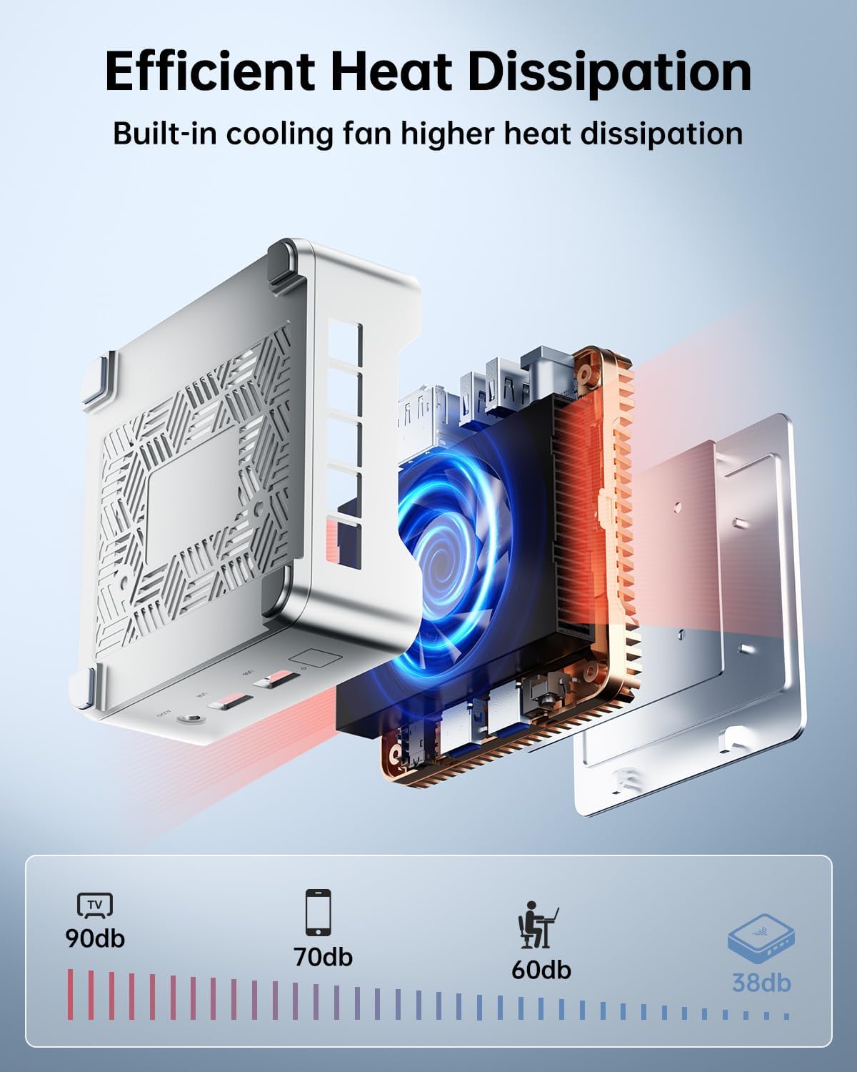 - 【FIND MORE BONUS ON E2】Fashionable design, surface fuel injection, support quick release, mini and compact, ultra-portable, energy saving, environmental protection, silent heat dissipation (15W performance release, dual air outlet design).Designed with 1 x DC, 2 x USB 3.2, 2 x USB 2.0, 1 x RJ45 Gigabit Ethernet port, 1 x HDMI port,1 xDP port, 1 x audio input/output, which can be connected to your multimedia devices, mouse, acoustics or headset. Small pc supports multiple device connections and can be used with servers, monitoring equipment, office equipment, displays, projectors, televisions, etc.