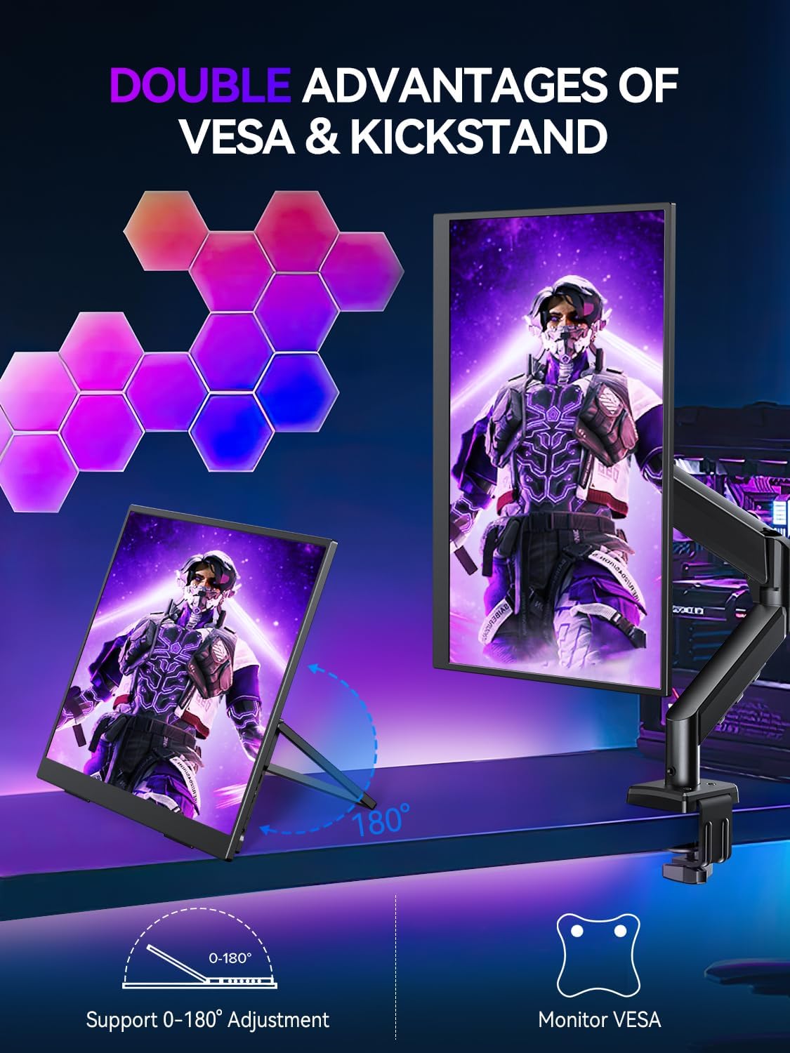 - Ultimate Portable Monitor with Stand: Enhance your gaming and work setup with this 18" portable monitor featuring sharp 2K resolution and a fast 144Hz refresh rate, complete with a convenient stand for easy adjustment