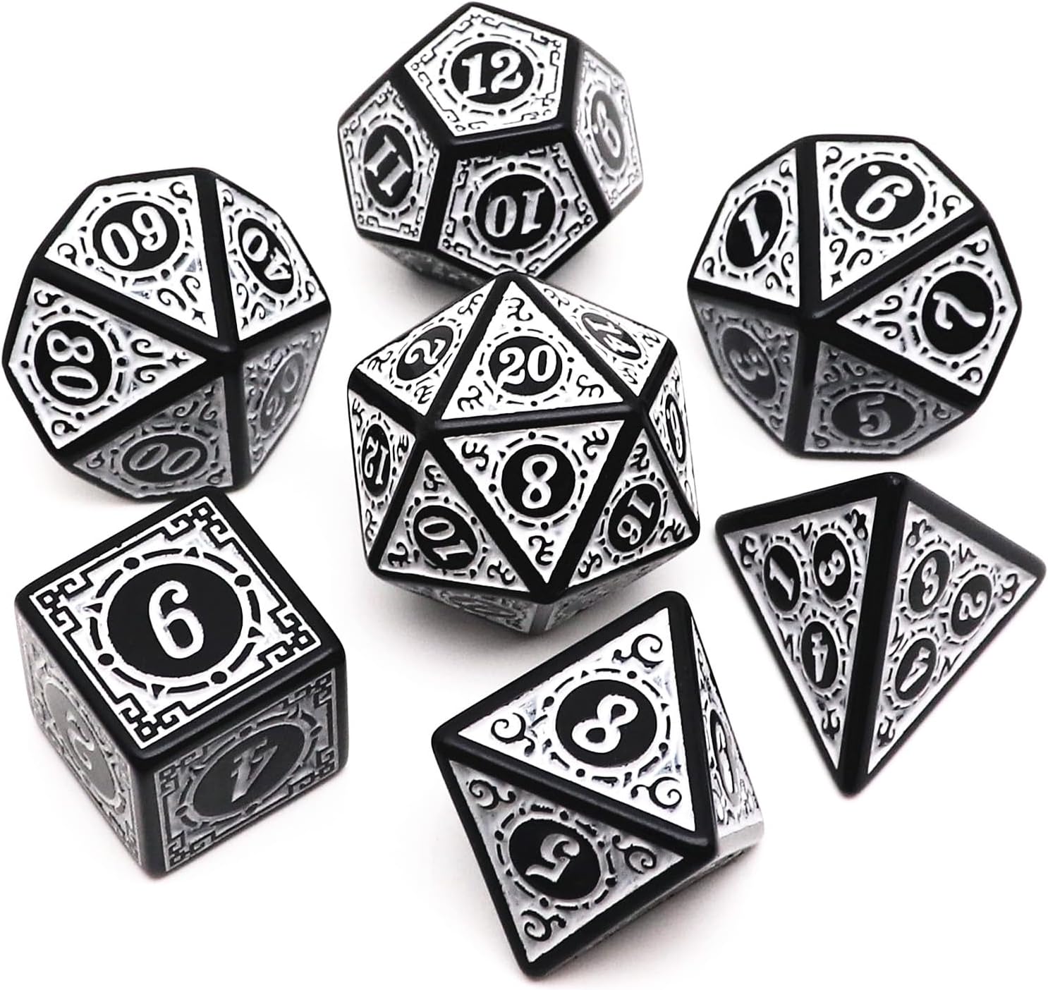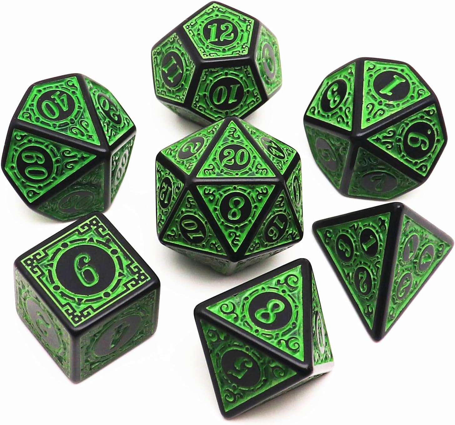 Polyhedral DND Dice Set, 5 Pack Dice Sets Fit for Dungeons and Dragons D&D RPG Games 7-Die Polyhedral Dice with Vintage Pattern 35 Pieces (5 Colors with White)