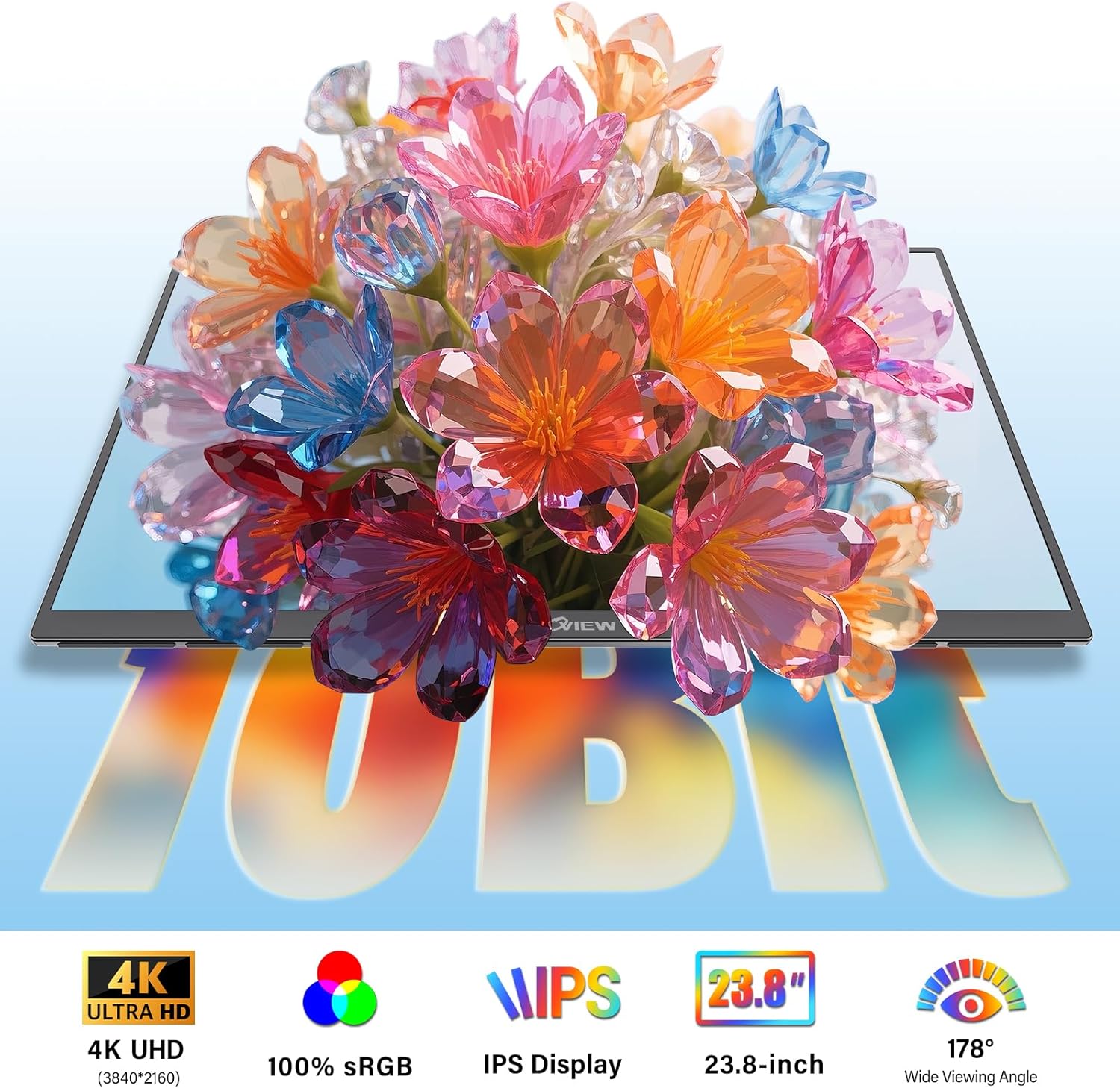 Innoview 23.8” 4K Large Portable Monitor, UHD (3840*2160) 100%sRGB IPS Speakers USB-C HDMI Work Home Second Monitor W/180°Adjustable Stand for Laptop, Desktop, Macbook, Phones, Tablet, PS5/4, Switch