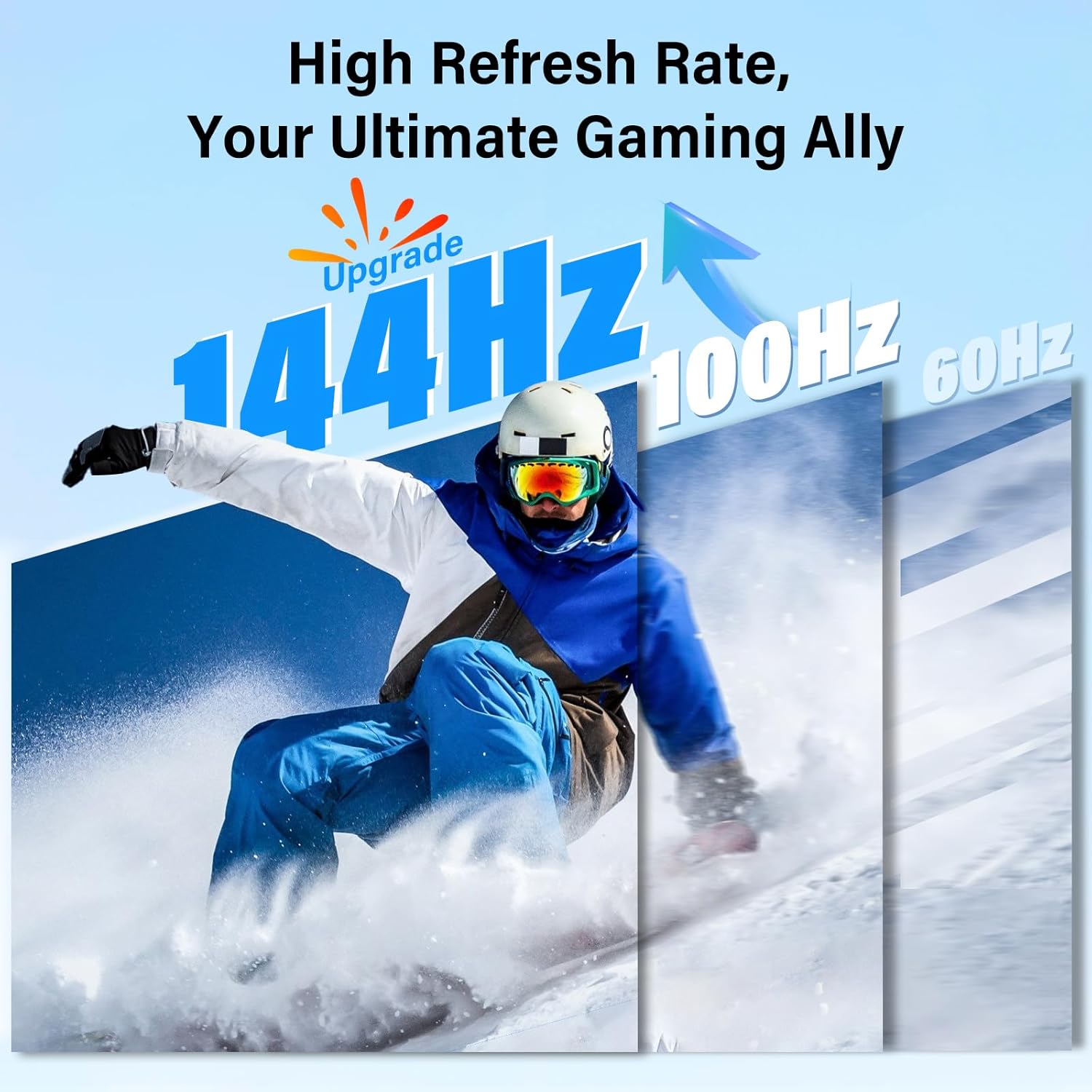 - 【Full HD 144Hz 100% sRGB Color Accuracy】The monitor boasts 100% sRGB color coverage. Experience stunning visuals with Full HD 1080P resolution and a 144Hz refresh rate, providing crystal-clear images and smooth motion for gaming, streaming, and multitasking.