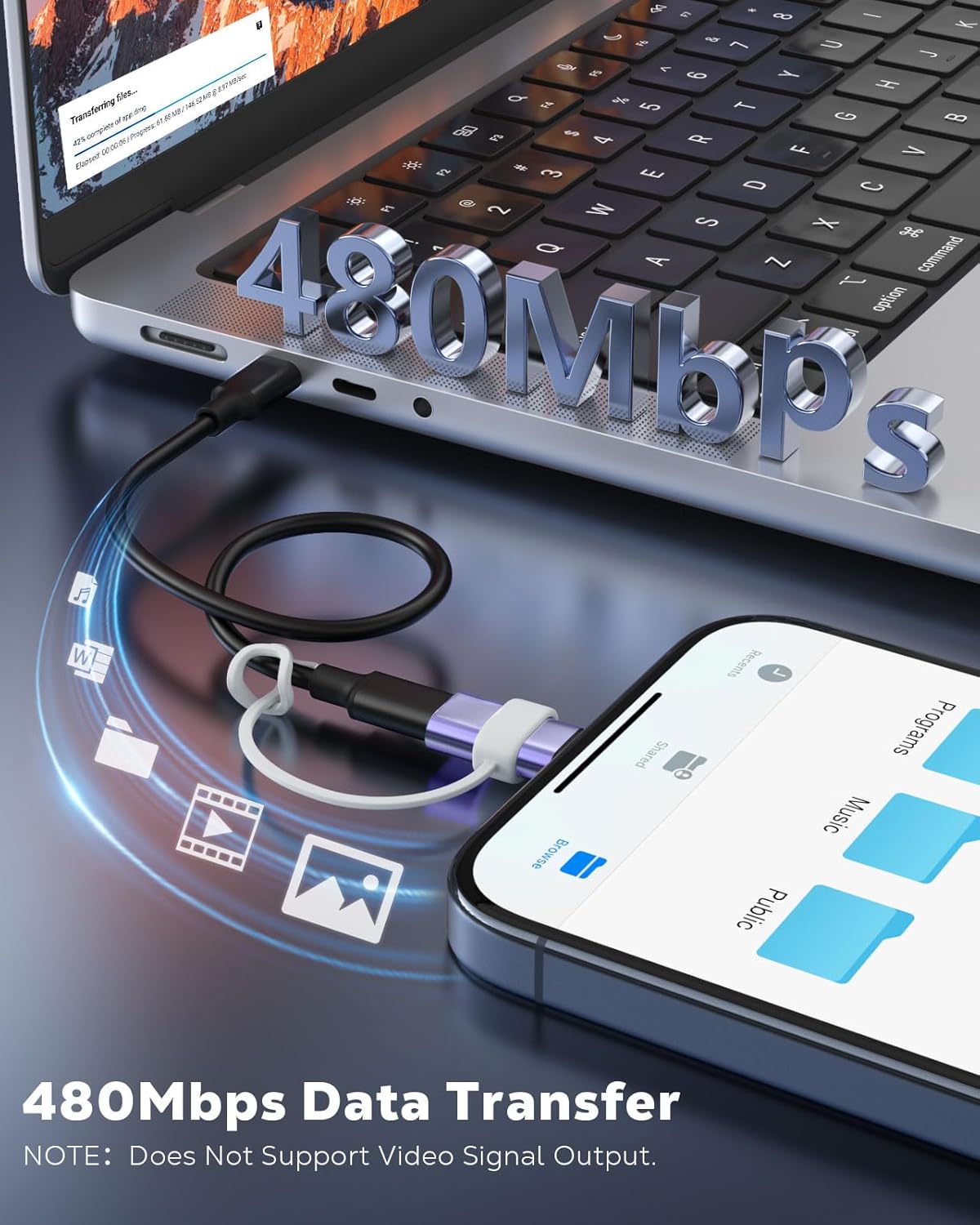 - NOT Support Audio and OTG Function: ONLY supports the charging function, and the data transfer between phone and computer or tablet and computer (Recommand to use original cable to avoid possible problem). Do not support OTG, audio and video functions. Not for Apple Pencil (1st Gen.), mouse, keyboards, USB flash drives, card readers, printers, microphones, HDMI converters and cameras, etc.