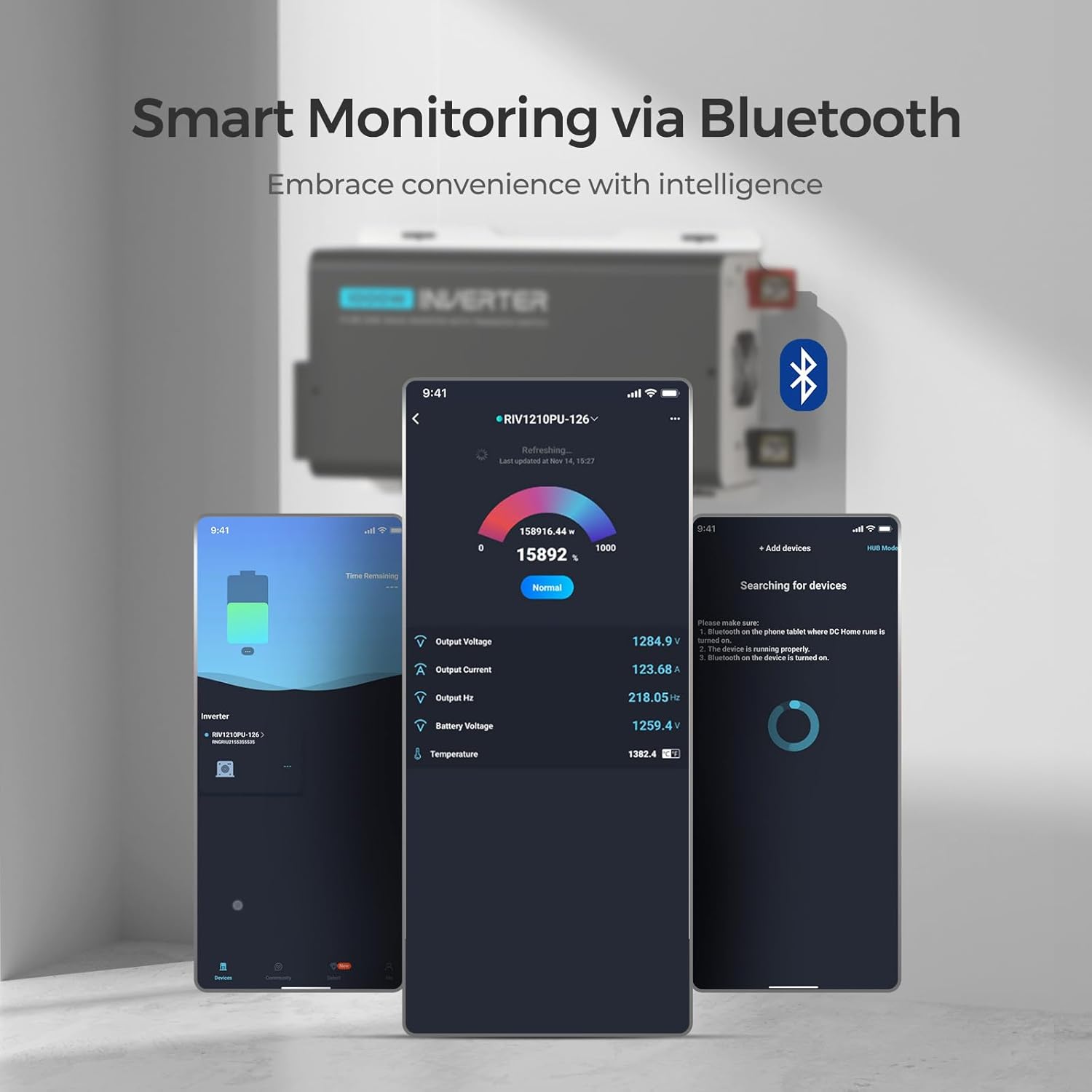 - Built-in UPS Transfer Switch & Bluetooth: This 1000 watt inverter can auto switch to grid power in 20ms, built-in design saving space on the RV and cost of purchasing the transfer switch device. Supporting remote control or Bluetooth control via Renogy APP monitoring, providing effortless connectivity and ultimate convenience