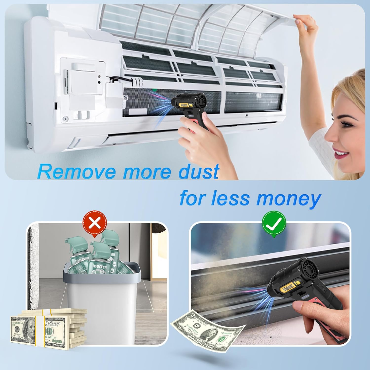 - 【Rechargeable Air Duster】Featuring an 8000mAh battery and USB-Type C charging, this electric air duster charges fully in 2-3.5 hours, reducing downtime and keeping you prepared for any task. Benefit from fast, reliable recharging for seamless operation.
