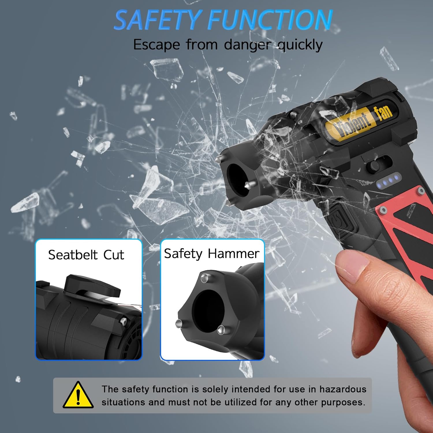- 【Special Emergency Safety Features】This electronic air dust collector is equipped with a special safety feature, including an [emergency window breaker] and a [seat belt cutter], which can help you deal with emergency situations. The safety hammer is made of tungsten alloy, enabling it to break the car window more forcefully. The seat belt cutter, made of carbon steel, can cut through the seat belt more quickly, allowing you to escape from danger.