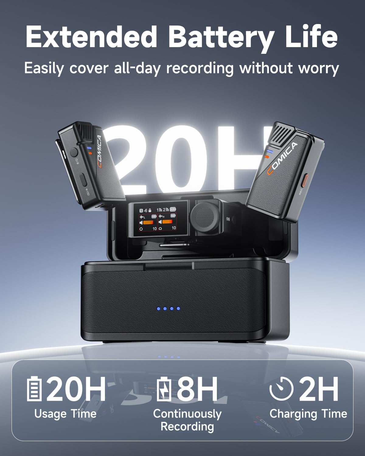 COMICA BooMax Wireless Lavalier Microphone for iPhone/Android/Camera/Camcorder/PC, Dual Lav Mic with 48kHz/32-bit Audio, 32GB Storage, Touchscreen, Lapel Mic for Video Recording, Streaming, Podcast