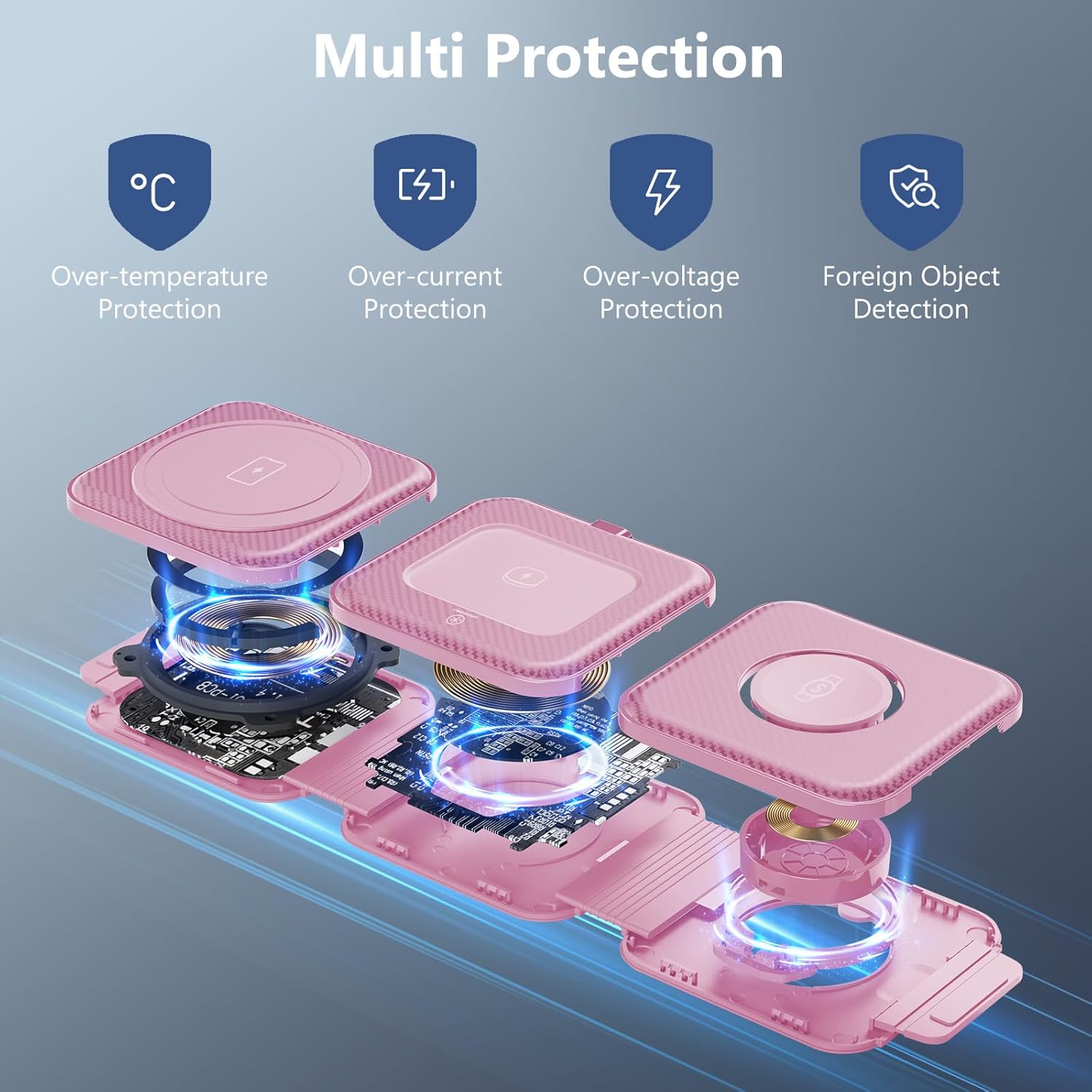 - FOCUS ON SAFE CHARGING: The upgraded certified wireless charger pays more attention to safe charging, Equip with integrated smart chips and offers multi-protection like over-voltage protection, short-circuit prevention, over-current protection, and more, and brings you a fast and stable wireless charging experience, keeping your devices in good condition.
