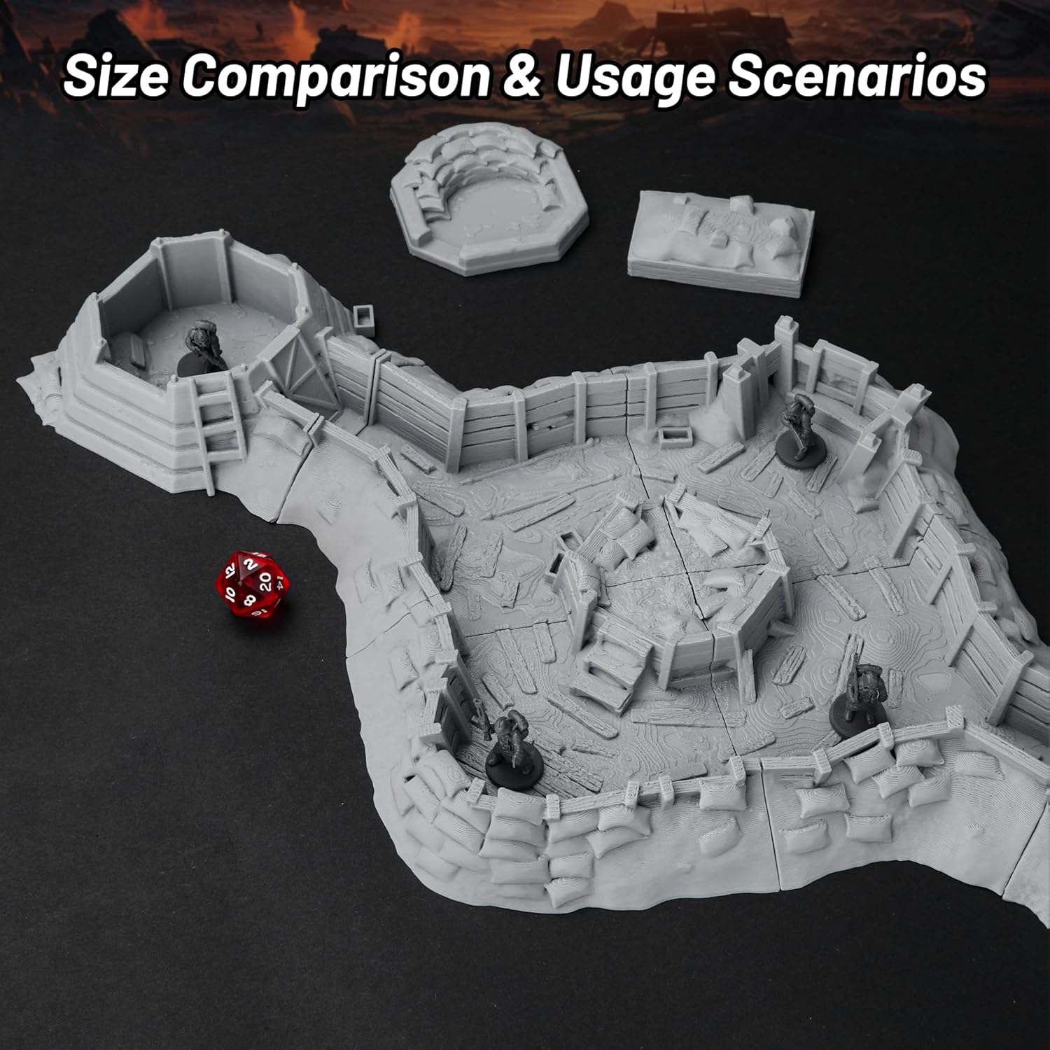 - Durable Plastic with Detailed Texture Built from sturdy plastic, the rugged texture of sandbags, debris, and wood planks brings gritty realism to your dnd terrain sets and withstands frequent use in long campaigns.