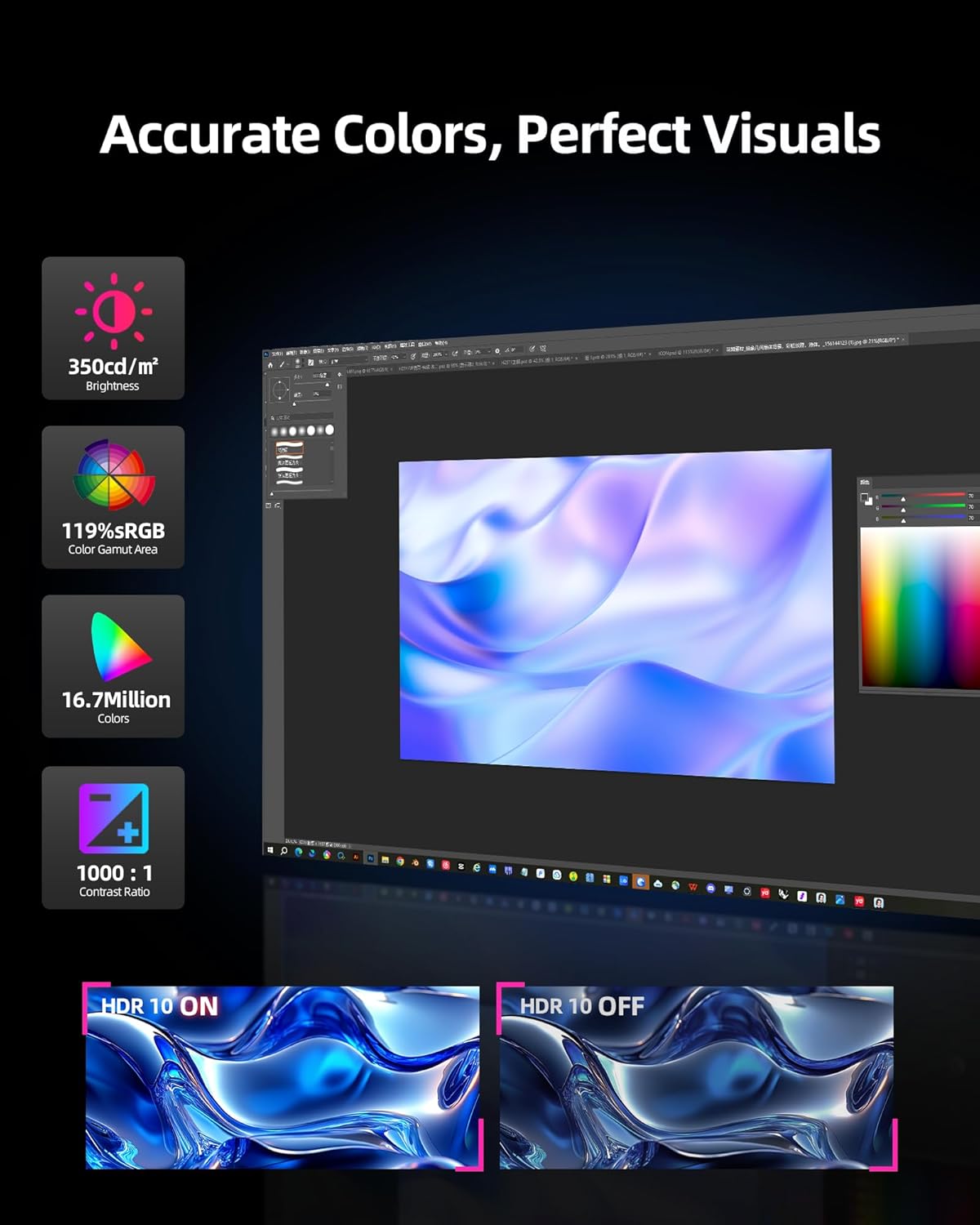 - Fast IPS Monitor with Vivid Colors: With 119%sRGB color gamut area, 8-bit colors, 1000:1 contrast ratio and 350cd/㎡ brightness, this ktc displayport monitor provides you with vivid and true-to-life colors.