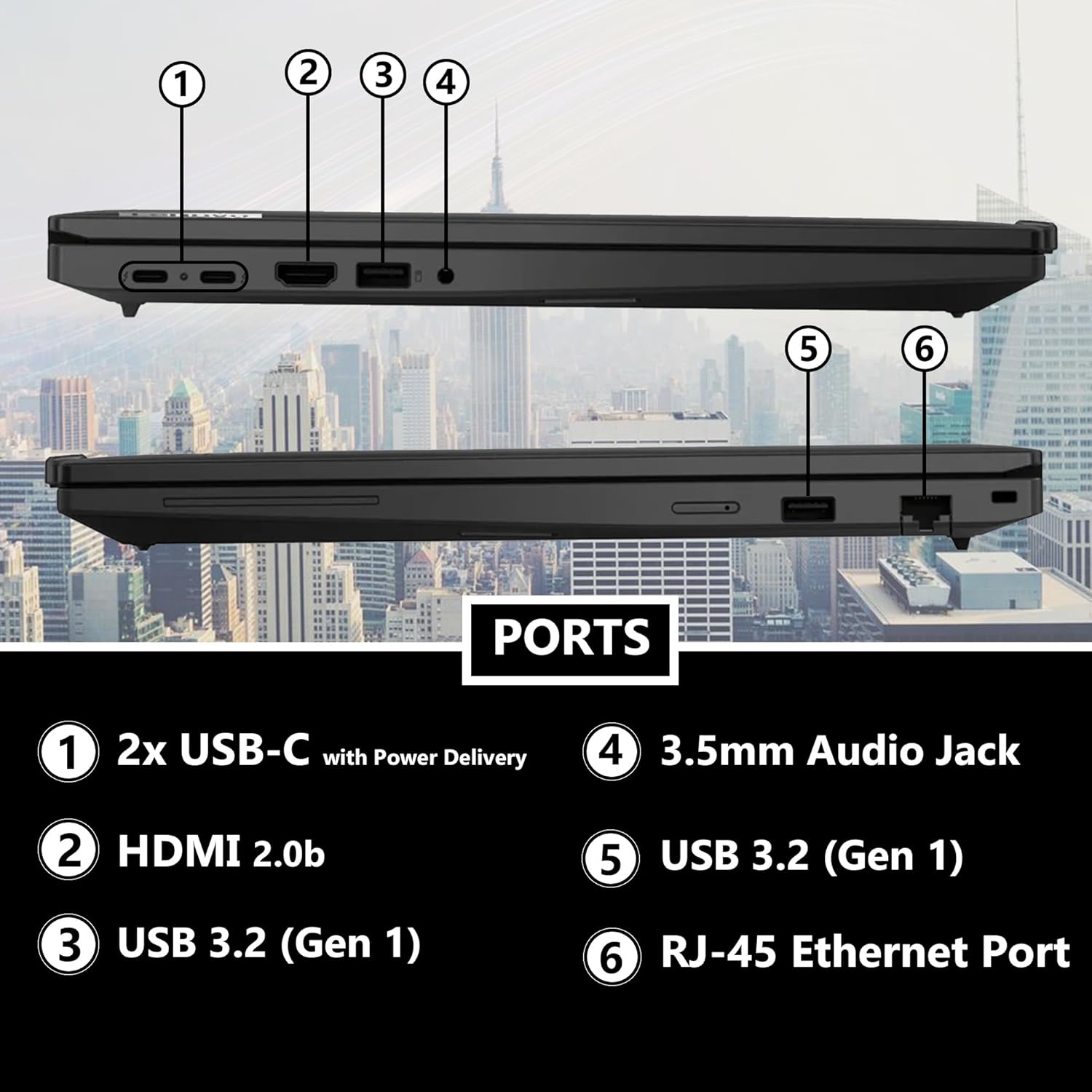 - KEYBOARD & CONNECTIVITY: The ThinkPad T16 features spill-resistant, backlit keyboard for comfortable typing. A fingerprint reader provides secure, one-touch login. Stay connected with Wi-Fi 6E AX211 or RJ-45 Ethernet, , Bluetooth 5.3, and enjoy versatile connectivity with USB-A 3.2, USB-C 3.2, USB-4 Thunderbolt, HDMI 2.0, and a 3.5mm jack for seamless device