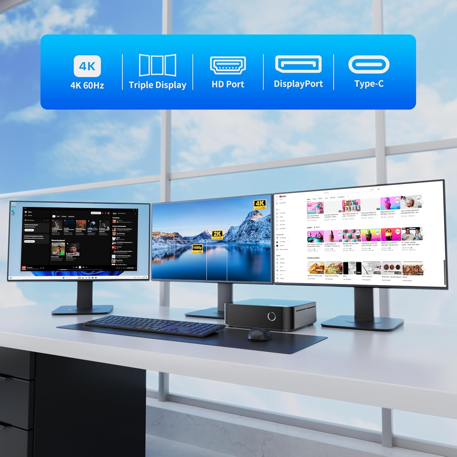 - Triple 4K Display Ready Dual HDMI 2.0 + USB-C = Stunning 3-Screen Setup Extend your workspace across three vibrant 4K@60Hz displays—perfect for multitasking, design, or immersive entertainment.