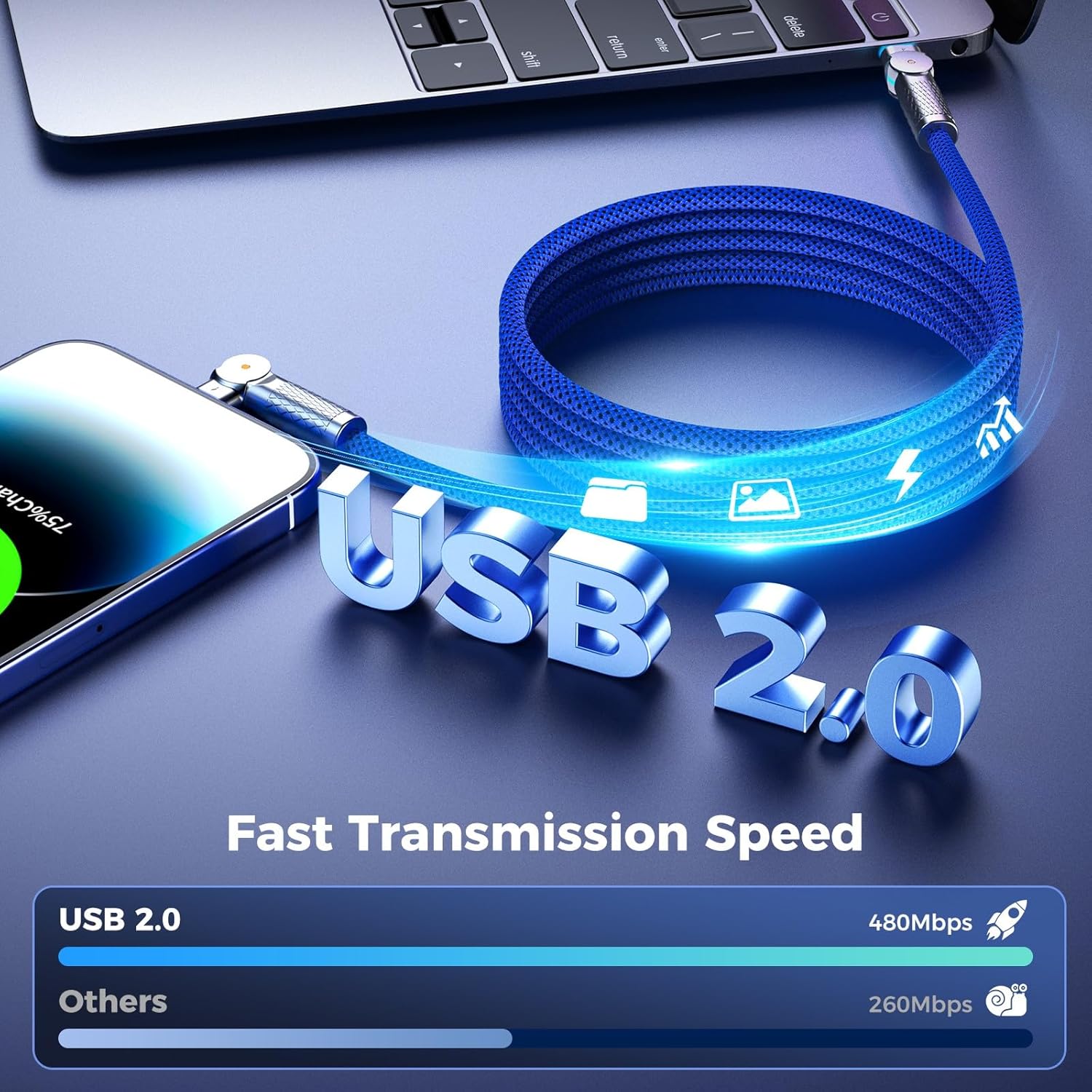 - 240W RAPID CHARGING &480Mbps DATA TRANSFER: The usb c to usb c Braided cable 10FT 240W-blue is built in E-marker chip, supporting 240W PD 3.1, QC 4.0 charging & USB 2.0 480Mbps data transfer.the type c charger cable supports high-speed charging up to 240W without battery damage when used with a compatible usb c charger. the c to c cable is a solid choice for users who prioritize fast charging, high safety, long reach and a touch of style