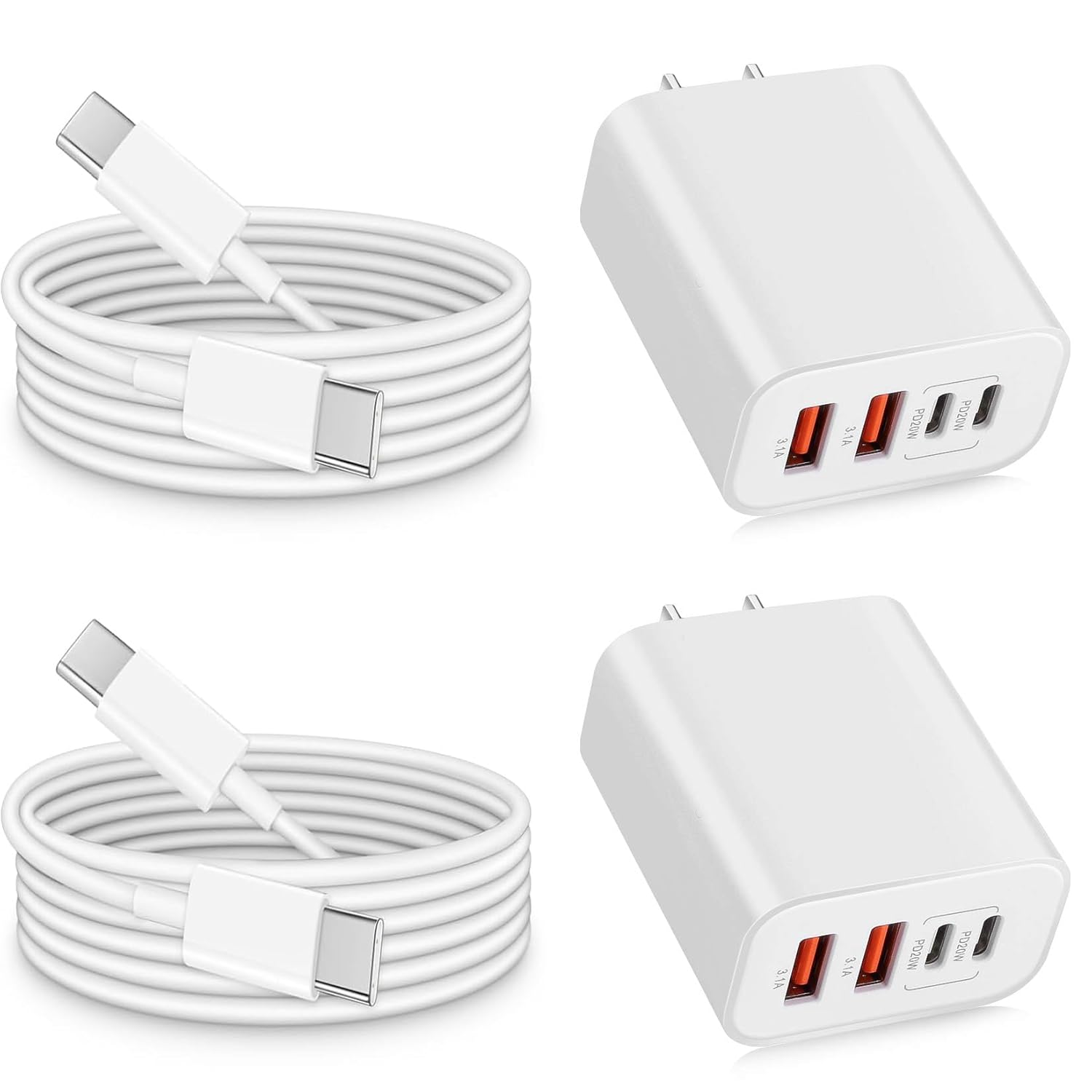 USB Type C Charger for iPhone 16 Pro,40W Multiport Type C Charger Fast Charging,2Pack 4 Port USB C Wall Charger 10FT USBC Chargers Cord for iPhone 16/16 Pro/16 ProMax/16e/15/15 ProMax/15 Plus,iPad Pro